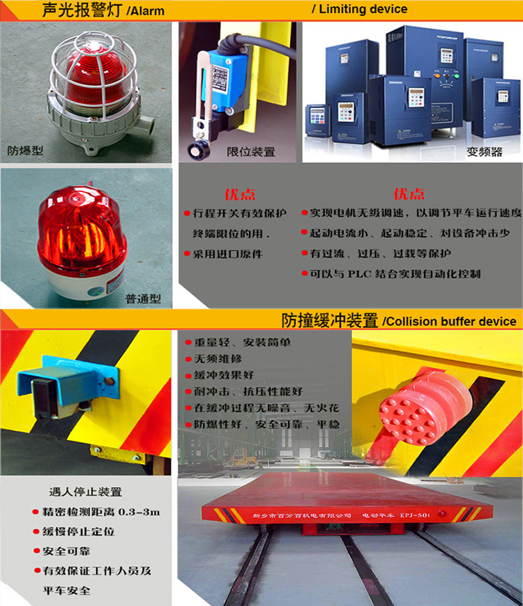 1、KPJ系列轨道运输车适应于任意载重吨位,运行距离远,平车可以在恶劣环境、高温环境、防爆环境等场合。