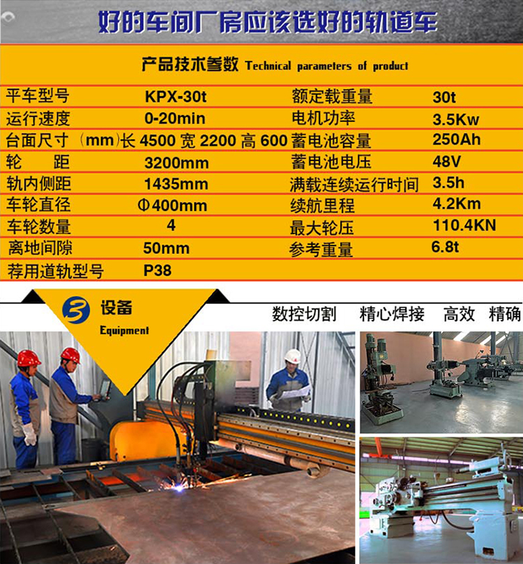 1、KPX电动平车对轨道的铺设要求不高,普通的轨道就可以满足需求。