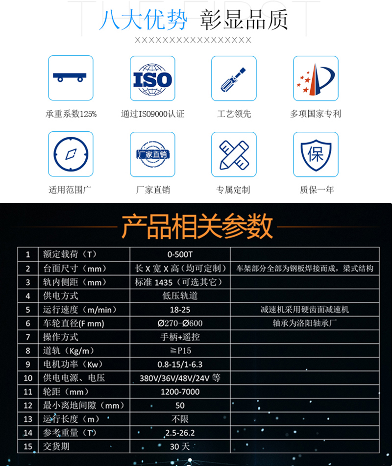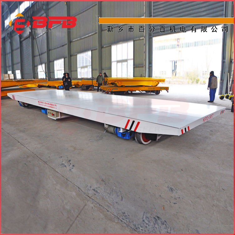 KPDS平板滚轮车是三相交流电机驱动,适用大吨位货物搬运,一般大于50吨,对于运行距离超过50米需要增加降压器数量,弥补轨道压降。