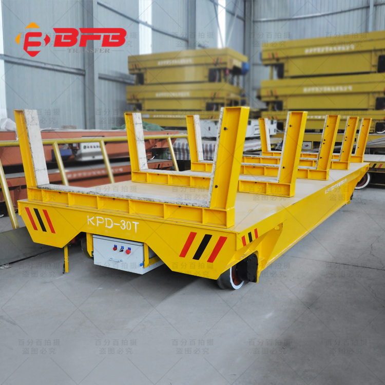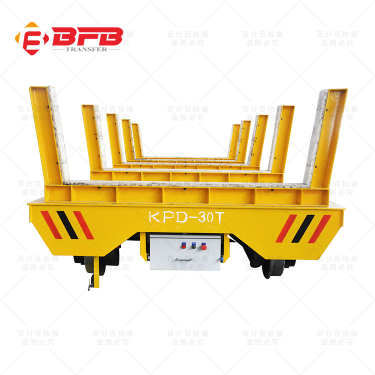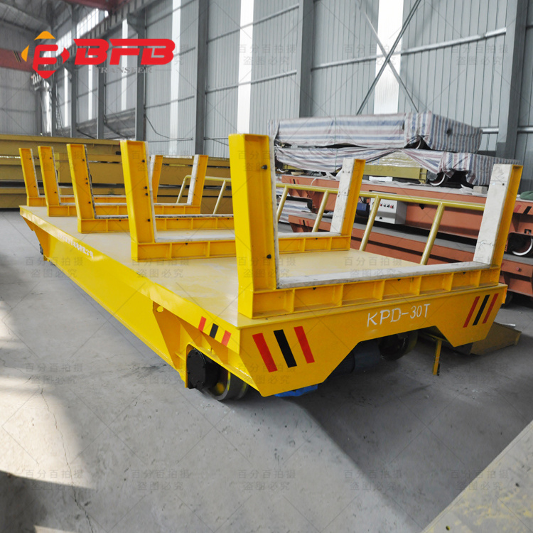 KPD系列工业轨道平车是36V单相(三相)低压轨道供电电动平车,以轨道滑触线供电。地面降压变压器控制柜将单相(三相)交流380V降压至单相(三相)36V,经轨道滑触线馈送给平车,再经车载升压变压器升压为单相(三相)交流380V。给平车用单相电容电机提供电力(三相时为YZ起重冶金用电机)。