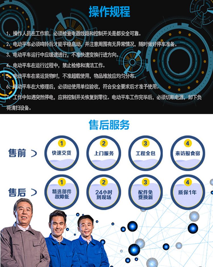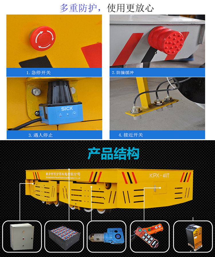1、转弯轨道平车的电气自动化控制现在已成为车间物料运输流水线工作的重要工具。今日,成都某客户提出这样的技术要求:全程运行距离近300米,呈环形运输路线,要转4-6个弯道,台车运输物料到指定位置之后可以自动卸料,一条运输线要配置多台车,且是6小时工作,整个的工作流程只需在总控室监控完成,不需要随电动平车的操作。结合前面做的自动化工程经验和成熟的转弯电动轨道平车技术,技术部选择采用蓄电池供电型转弯轨道平车方案,保证转弯过程中取电的稳定性。这样减少了人力物力资源,并且提高了工作效率。