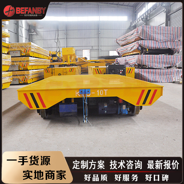 KPJ系列轨道平车价钱相对较低,限制在小范围内,一般不超过30米,可以采用这种方式,不仅可以降低成本,而且车身高度便于货物卸载。