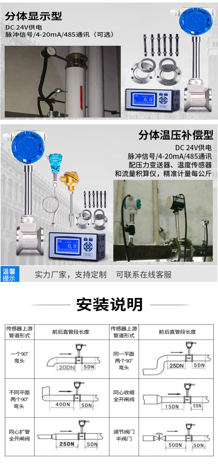 LUB压缩空气流量计 高温空气流量表 气体标况显示同时集成温压补偿补偿功能,可测量流体的标准体积流量或标准质量流量。