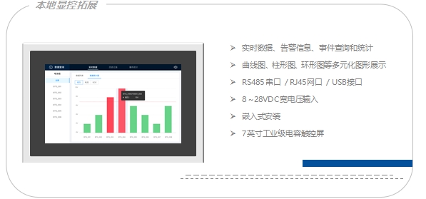 ABAT-D-07触摸屏作为选配模块,通过串口或网口连接采集器,实现蓄电池监测系统本地显控的拓展。触摸显示屏作为7英寸电容触控屏,采用安卓系统,内置APP,界面清晰,易于操控。可查询电池监测系统的实时数据、告警记录、图表显示和事件记录等相关内容。