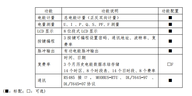 电能计量:总有功电能、正向有功总电能、反向有功总电能、总有功尖电能、总有功峰 电能、总有功平电能、总有功谷电能、总无功电能、正向无功总电能、反向 无功总电能、总无功尖电能、总无功峰电能、总无功平电能、总无功谷电能。