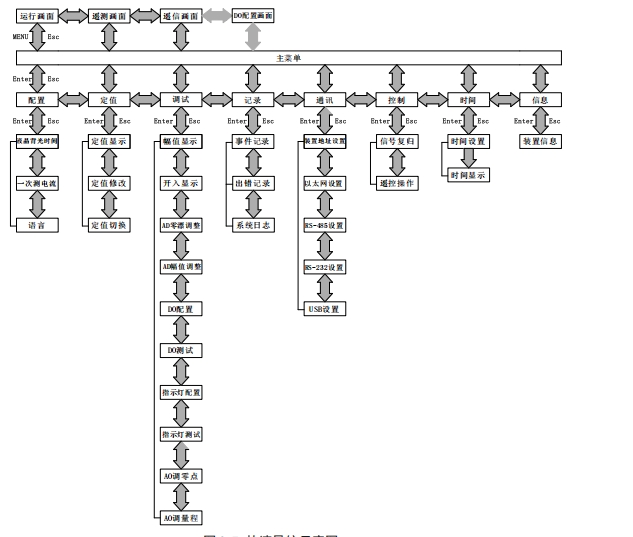 装置的人机交互主要在面板上进行,包括四个部分:液晶显示、LED 灯指示、按键和RS232(DB9)维护口。液晶显示屏采用 256*160 点阵,可以显示测量电流、电压、功率等电参量实时值,遥信量,事件记录,装置参数,定值参数,时间,装置版本号信息等。LED 灯用来指示装置的运行状态、保护动作等信息,具体指示内容可根据用户需要进行任意配置,图 3.1 中为出厂默认配置。