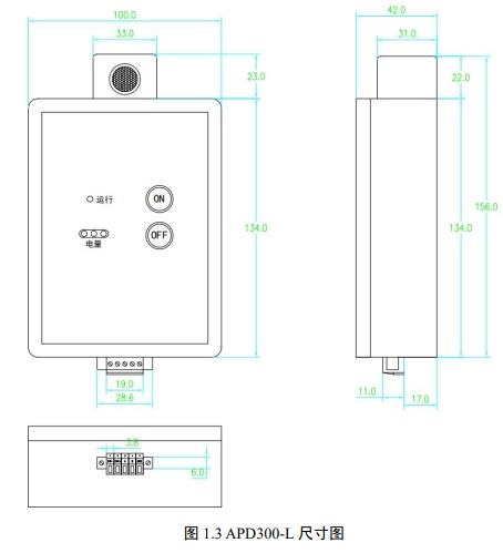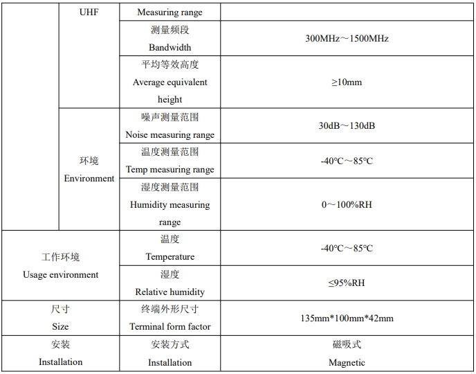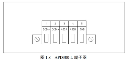 三合一有线局放传感器 APD300-L 接线端子示意图如下,针脚定义:端口 1:电源正极; 端口2:电源负极;端口 3:RS485 通信 A;端口 4:RS485 通信 B。通信接口 RS485,波特率 9600。 AE 幅值超过 AE 报警定值同时 AE 放电次数超过 10 次,AE 报警标志位致 1;TEV 幅值超过TEV 报警定值同时 TEV 放电次数超过 10 次,TEV 报警标志位致 1;UHF 幅值超过 UHF 报警定值同时 UHF 放电次数超过 10 次,UHF 报警标志位致 1。