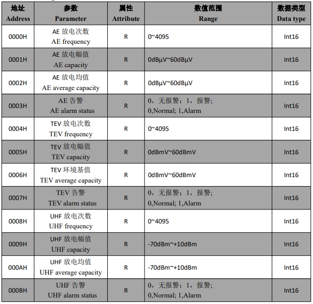 在本章主要讲述如何利用软件通过通讯口来读写 APD 局放监测装置的数据。本章内容的掌握需要您具有 MODBUS 协议的知识储备并且通读了本册其他章节所有内容,对本产品功能和应用概念有较全面的了解。本章内容包括:通讯应用格式详解,本机的参量地址表。
