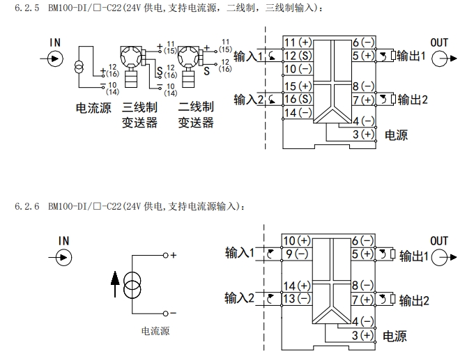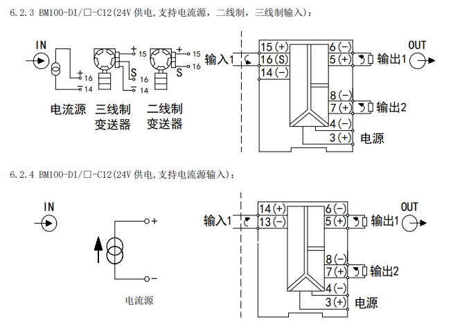 注:二线制输入、三线制输入配电电压≥14V(20mA 输入时)
