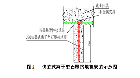 4、连接方式为塔接,用导电石墨线缠绕扎紧,塔接的长度为接地体直径的10倍;