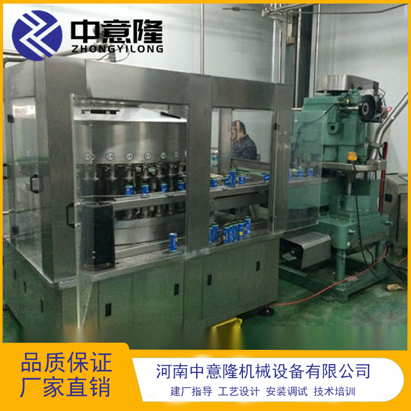 (2)易拉罐装设备组成:包括水处理系统、原果处理系统、调配系统、全自动卸罐机、冲罐机、灌装封盖机、UHT灭菌机、冷罐机、储罐台、喷码机、液位检测机、收缩膜包装机、实罐输罐输箱系统、电气控制系统等在内的一整套灌装包装生产线。可选设备:纸箱包装机等生产能力:我公司已经形成了完整的系列化产品线,可供应能力从1,000罐/小时,到30,000罐/小时,(以355ml易拉罐计算)
