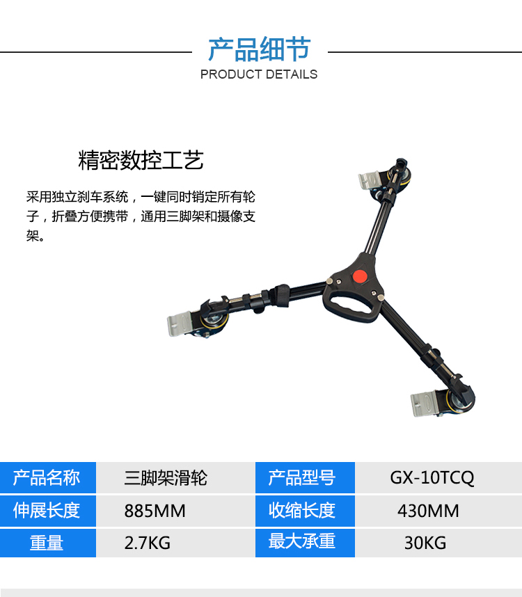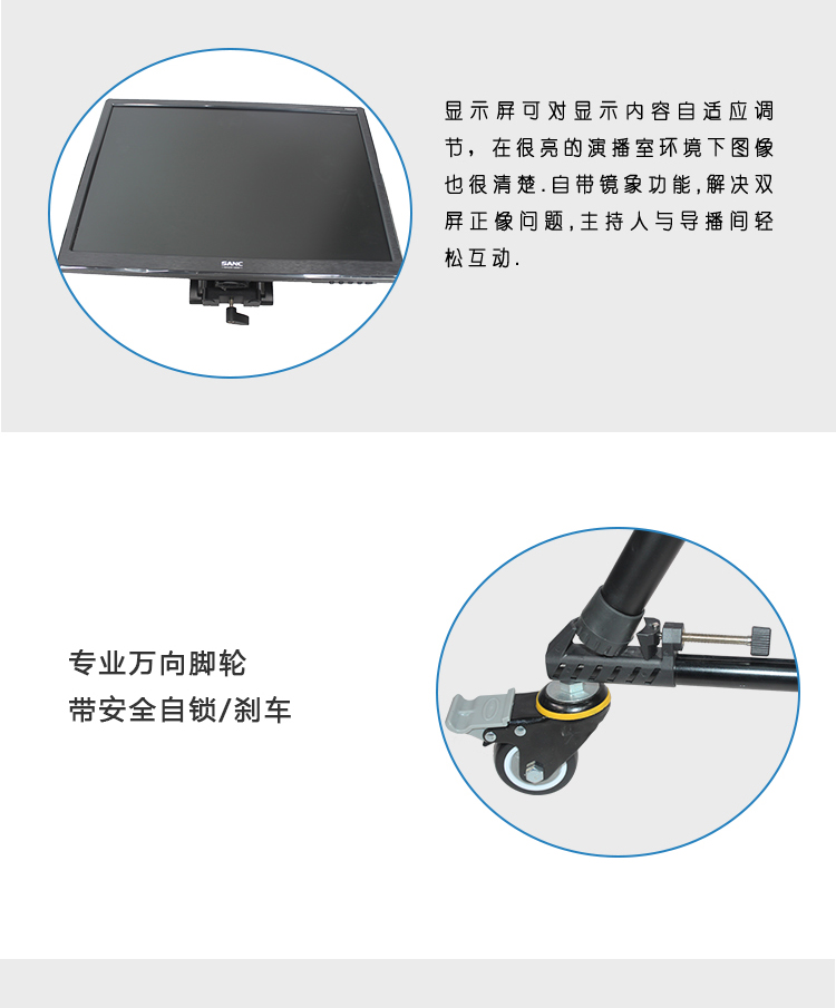 搭配万向脚轮,方便移动,满足多种角度拍摄,提高节目质量