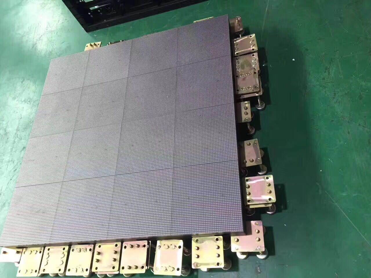 我司自主研发生产的室内外LED舞台地砖屏已经获得专利证书,该产品主要特点为:1. 全防水(可直接用水冲洗)、抗震性强、防滑性好(演员可任意在上面跳动, 不会滑倒)、承重量大(汽车可直接碾压,单个受力点承重1.2吨左右)、单个箱体可微调箱体间的高度差、面罩为PC+复合材料,具有防紫外线功能,可暴晒太阳下(屏幕表面不会发黄)、外形美观大方、清晰度高、亮度高、散热好、安装方便、显色柔和清晰。2. 一屏多用:平铺时可作彩砖使用;堆装或吊装时,可作舞台主屏幕或彩幕使用。3. 此产品通过传感或红外技术,可升级为感应屏,可与观众互动。全国免费服务热线:4008772858