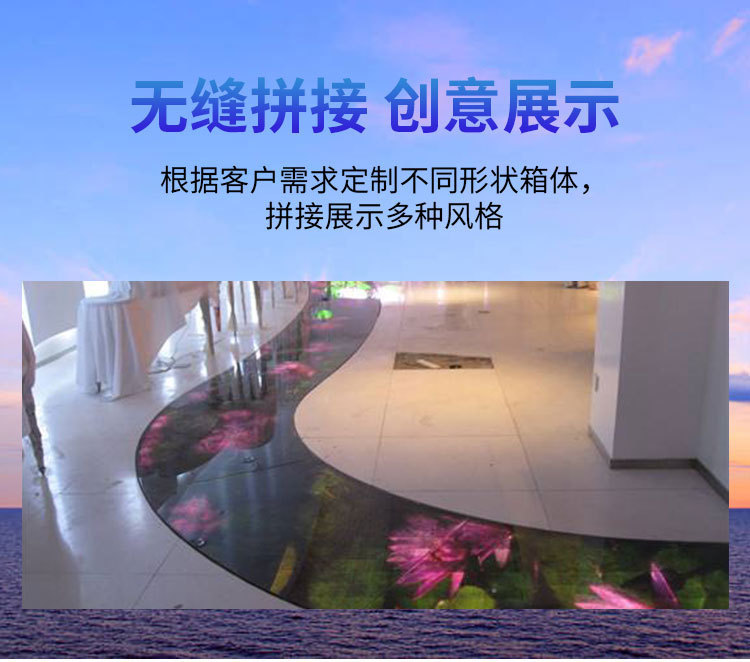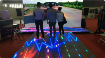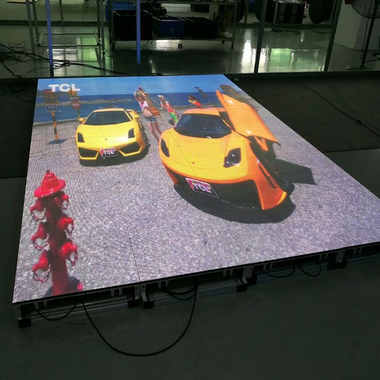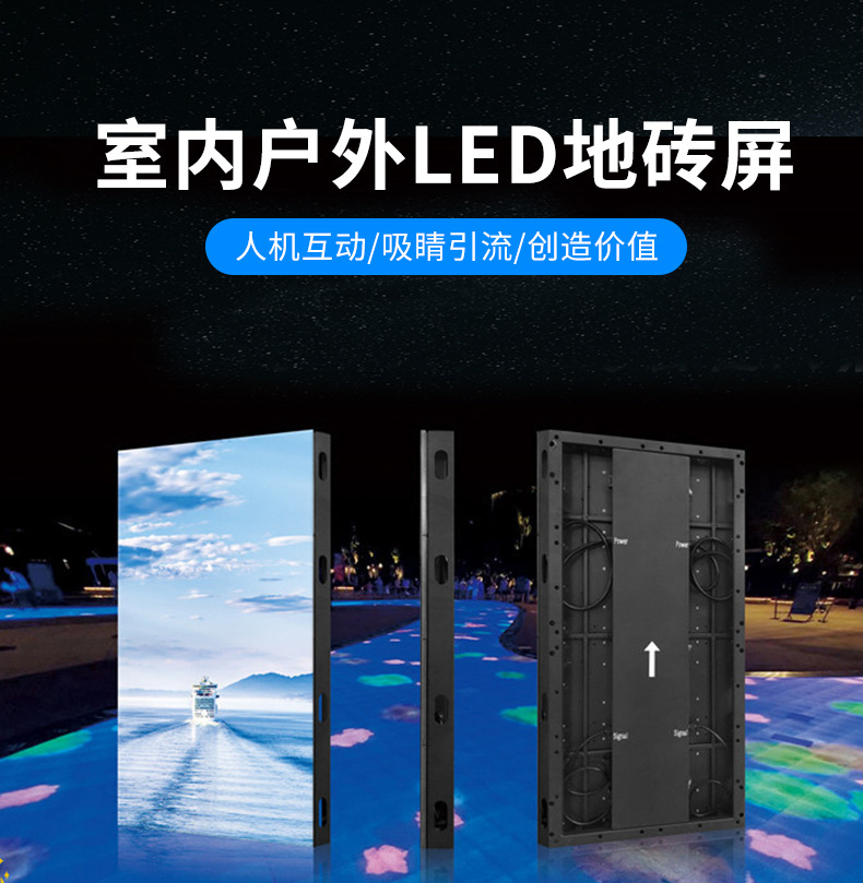 我司自主研发生产的室内外LED舞台地砖屏已经获得专利证书,该产品主要特点为:1. 全防水(可直接用水冲洗)、抗震性强、防滑性好(演员可任意在上面跳动, 不会滑倒)、承重量大(汽车可直接碾压,单个受力点承重1.2吨左右)、单个箱体可微调箱体间的高度差、面罩为PC+复合材料,具有防紫外线功能,可暴晒太阳下(屏幕表面不会发黄)、外形美观大方、清晰度高、亮度高、散热好、安装方便、显色柔和清晰。2. 一屏多用:平铺时可作彩砖使用;堆装或吊装时,可作舞台主屏幕或彩幕使用。3. 此产品通过传感或红外技术,可升级为感应屏,可与观众互动。