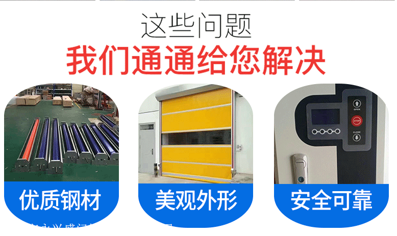 快速卷帘门被设计用于有不同环境要求区间之间的隔断与快速开闭,以起到隔断空气流通 和保障快速通行的作用。是设置在建筑物内外出入口,用软帘做成的快速自动卷门。由于开、关 门速度快,缩短了出入口的开放时间,减少了不同区间之间的空气对流和热能交换,对于创造安 全、卫生和节能的工作环境有很大的作用。广泛适用于汽车制造、医药、电子、洁净厂房、净化 车间、卷烟、印刷、纺织、超市、机械制造等需要快速开闭的通行门洞口。