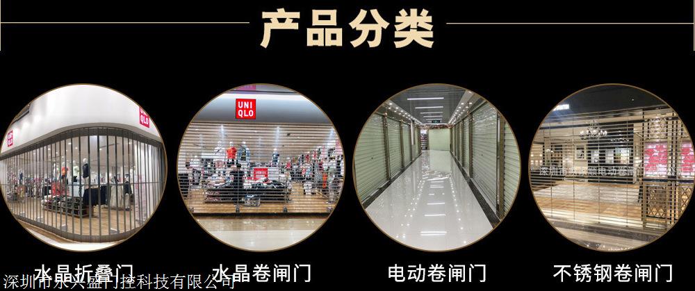 深圳永兴盛门控科技有限公司生产批发各种遥控彩色铝合金卷帘门、水晶卷帘门、折叠水晶门,铝合金网闸门、快速卷帘门、电动卷帘门、电动伸缩门、工业折叠门、防火卷帘门、硬质快速门、工业提升门等一系列机电一体化产品的开发、生产、销售及售后服务。产品设计新颖、价格合理、坚固耐用。各款门使用于:商场、银行、工厂、住宅、窗台、商铺、车房等,用途广泛。