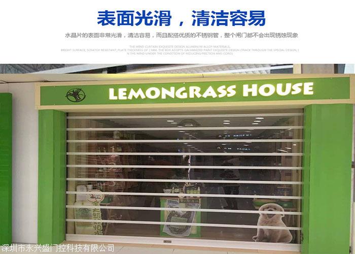 水晶卷帘门的卷帘与众不同的材质和结构设计,可有效防止强光照射和紫外线辐射,完全解决阳光对室内产生的温室效应,适用于各种气候和天气的变化,对室内环境具有长期防护效果,经过试验表明卷帘门窗对阳光的遮挡率可达到,对温度的遮挡率可达到95%以上。