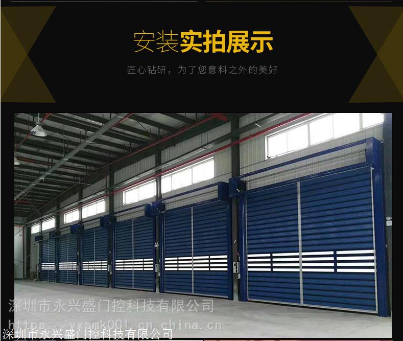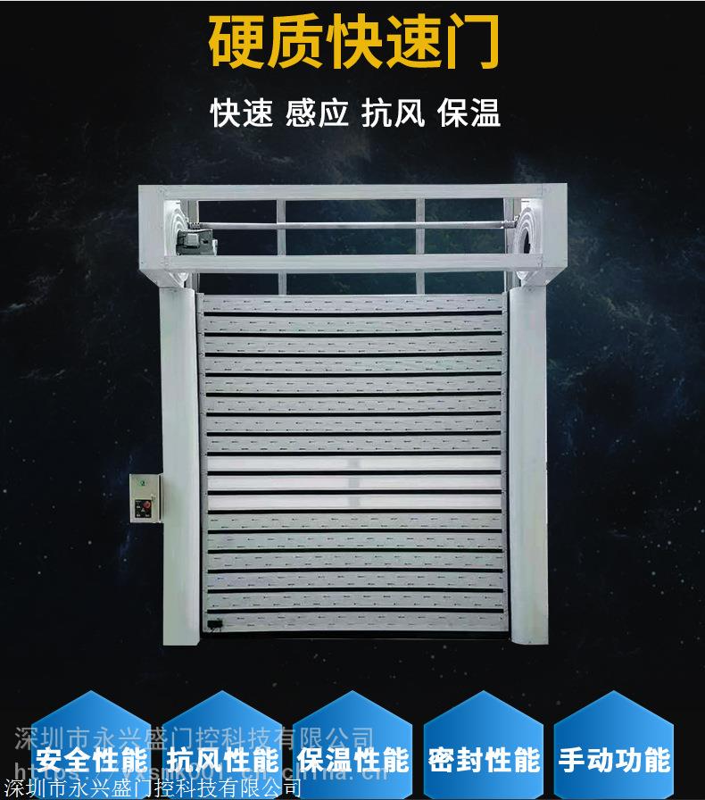 硬质快速门的门板采用铝合金门板,中间填充聚氨酯发泡,整体厚度为42mm,门板与门板之间具有断桥设计,具有良好的保温性能,门扇上可以开设透视窗,材质采用单层PC聚碳酸酯,驱动系统采用伺服电机,全套伺服控制系统,反应速度快,稳定性好,硬质快速门导轨采用采用双涡轮设计,使门扇在运行时流畅,无磨损,无噪音,硬质快速门尺寸可以做到5M宽,6米高,速度可以达到1.5M/S以上,可抗12级台风,硬质快速门是现在工业门所有产品中,性能优越,适应性广的产品,可以说是集中了工业门制作中的所以科技,它被广泛的运用在需要防盗,抗风,频繁使用的各个场合,比如说,物流,精密车间,停车库等等。