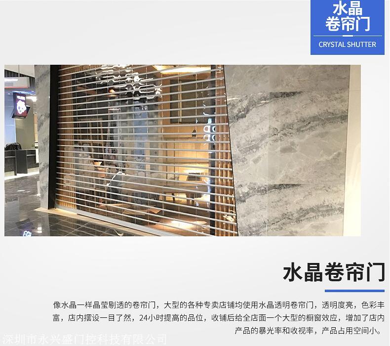 永兴盛水晶卷帘门的设计规格:透明门片材质:聚碳酸酯(PC防弹胶)