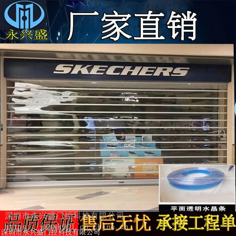 透明门片:材质:聚碳酸酯(PC防弹胶)规格:100mm × 300mm 。东莞水晶卷帘门,电动卷帘门规格齐全品质保证