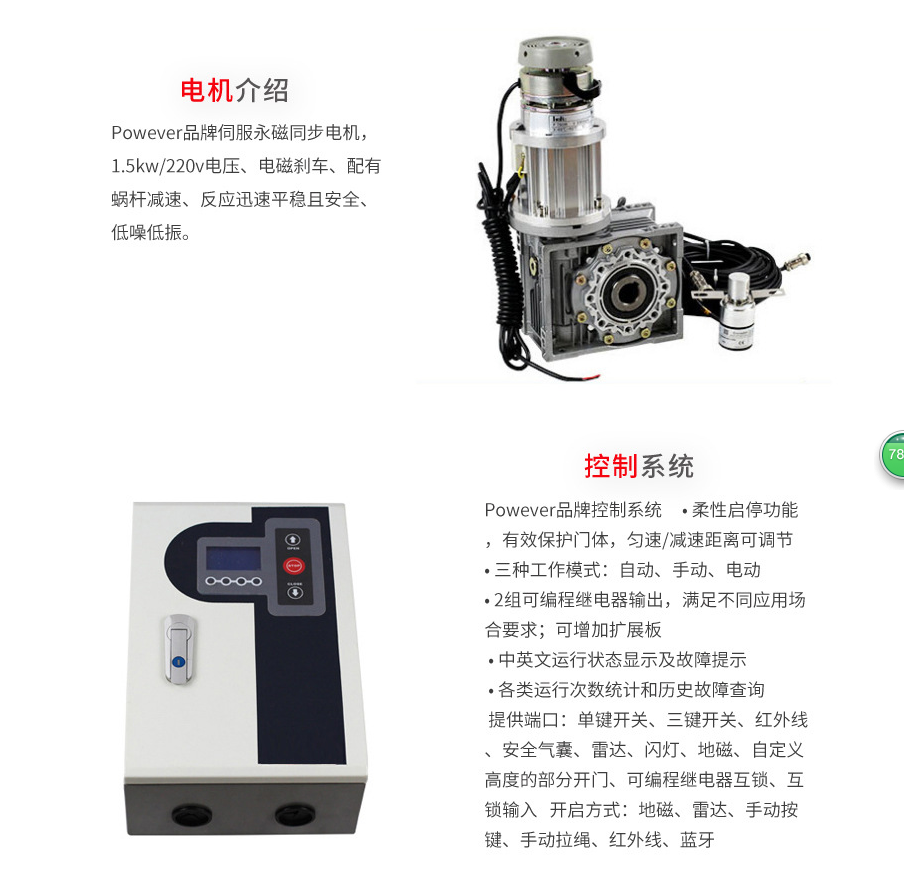 3、门的重量平衡采用重锤方式, 藏于门框中, 在断电时能够帮助将门打开。