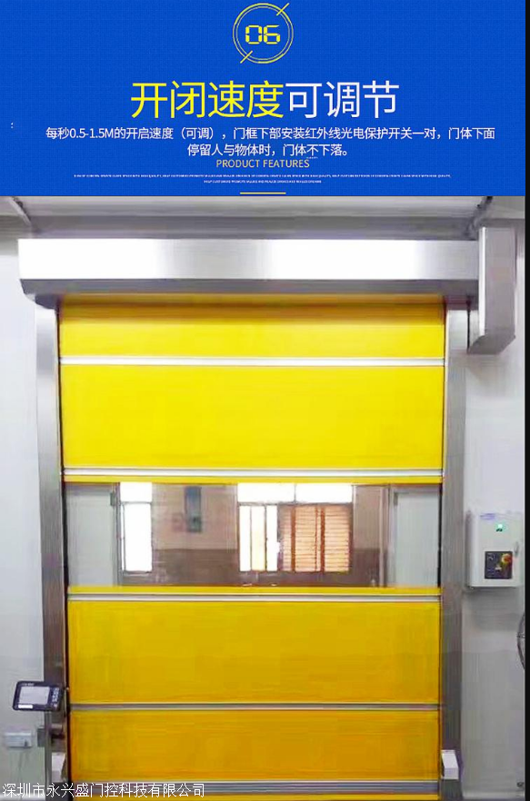 深圳市永兴盛门控科技有限公司是一家集快速卷帘门、铝合金卷帘门、电动卷帘门,水晶折叠门、快速卷帘门、工业提升门、上滑车库门、卷闸门、电动门、水晶卷帘门、水晶折叠门、电动侧卷水晶门、铝合金水晶门、铝合金防盗门、车库门和电机等的开发、设计、生产、销售、金属制作、施工及配套服务一体化的大型民营企业。产品适用于家庭、商场、银行、工厂、金店、车房、阳台等,用途广泛。