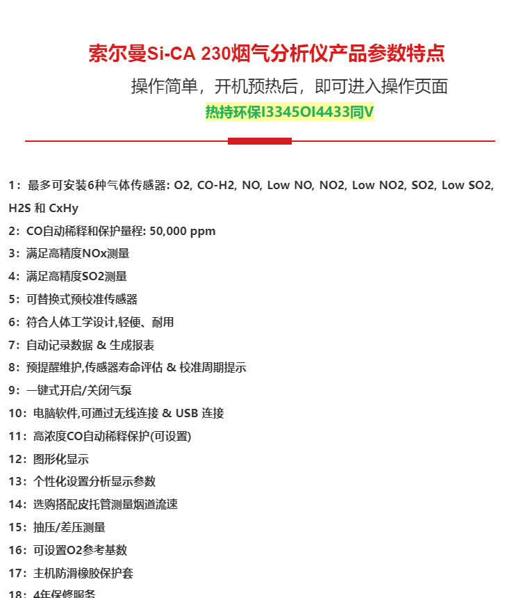 法国索尔曼烟气分析仪 法国索尔曼 Si-CA 230多功能型便携式烟气分析仪