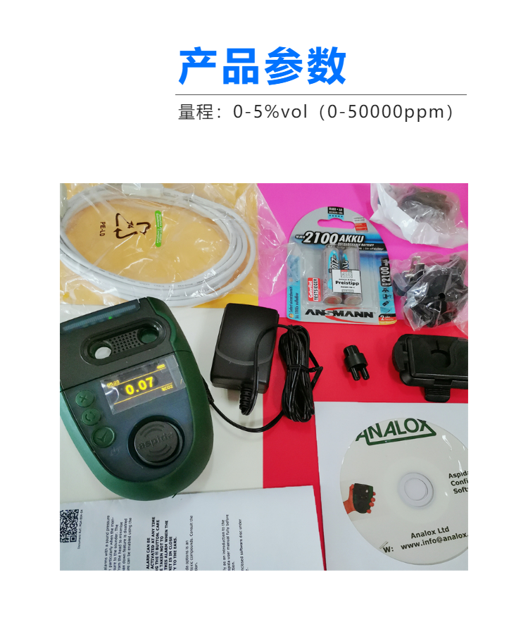 选 配:蓝牙打印机、高温采样枪、数据软件光盘、可弯曲采样探针