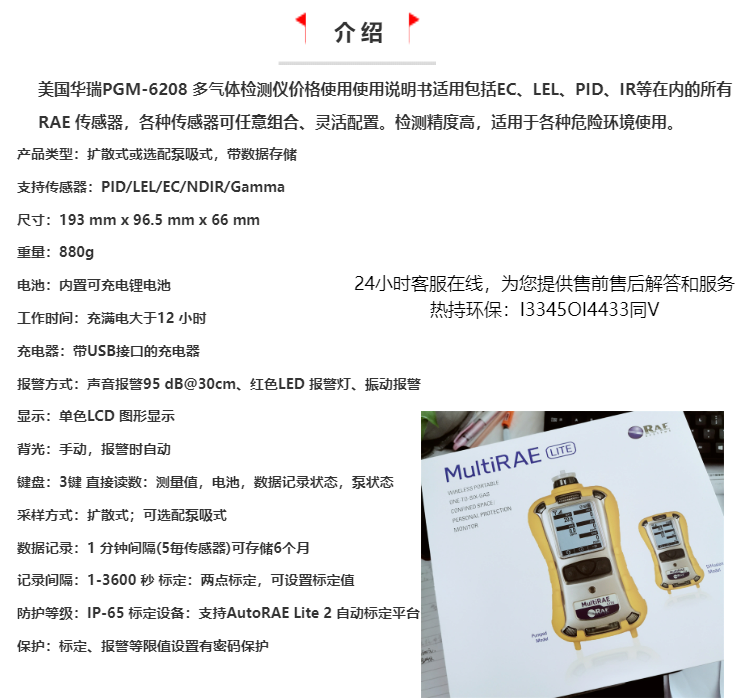 美国华瑞PGM-6208泵吸式多气体检测仪 便携式气体检测仪 美国华瑞复合气体检测仪