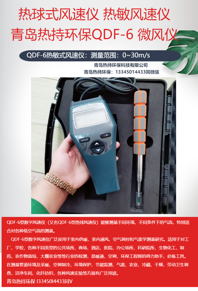 QDF-6型数字风速仪(又名QDF-6型热球风速仪)能够测量不同环境、不同条件下的气流,特别适合对各种低空气流的测量。