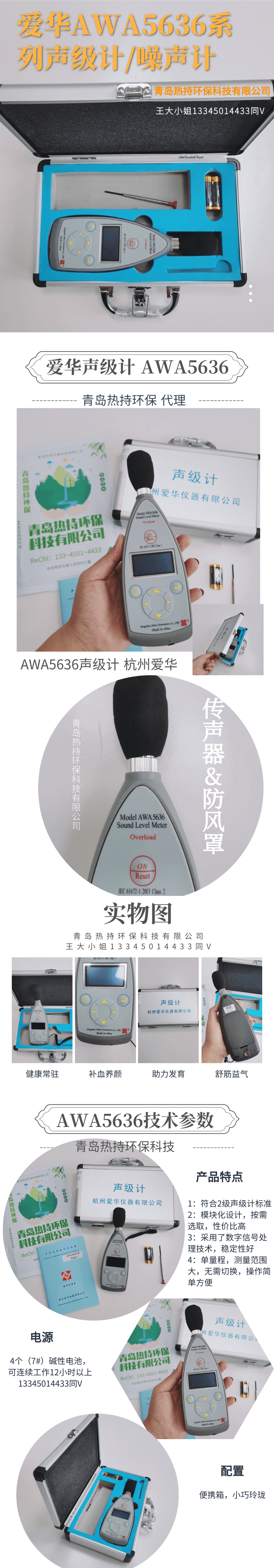 杭州爱华声级计AWA5636噪声计 噪音计 二级声级计