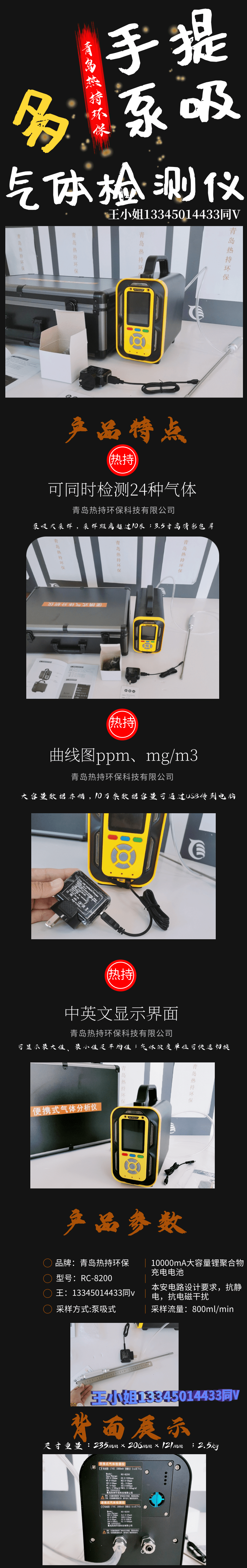 手提泵吸多气体检测仪RC-8200空气质量监测仪 国产泵吸式多气体检测仪