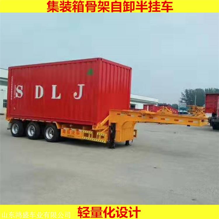 骨架后翻自卸半挂车 可拉20英尺集装箱骨架自卸车价格