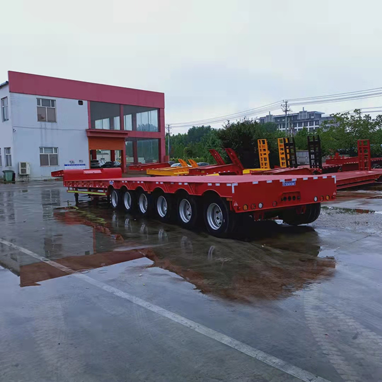 平板半挂车采用先进的计算机设计软件,进行优化设计灵活多样,根据用户要求设计车架承载面,满足各种特殊货物的运输。低平板半挂车系列尺寸有9.5米、10.5米、11米、12米、12.5米、13米、13.75米超底板平板半挂车,宽度2.8米-3米,款式有高低板,高低高,二轴,三轴,两线四轴高低高,三轴高低高,三线六轴高低高。 低平板半挂车用于拉机械设备,拉挖掘机、推土机等大型设备,可选装二桥三桥30吨、50吨、60吨、80吨、100吨、120吨、300吨低平板可抽拉、可选装液压爬梯车货架台柱平面低,保证了运输的平稳性,适宜运载各类工程机械、大型设备和钢材等。