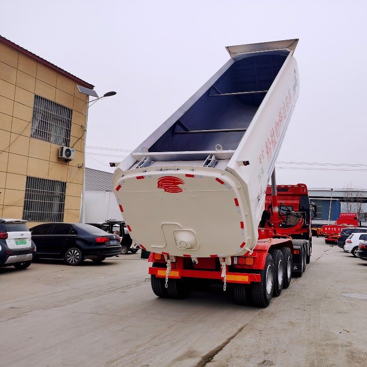 罐式自卸半挂车车架均为穿梁式结构,纵梁采用平直或鹅颈式。腹板高度从 400mm至550mm 锰板焊接,纵梁采用自动埋弧焊焊接,车架采 用抛丸处理,横梁穿入纵梁并焊接整体。 悬架采用非独钢板冲压式刚性悬挂(可选装空气式悬挂)由串联式钢板弹簧和悬挂支座组成,结构合理,具有较强的刚度和强 度,用来支承载荷减缓冲击。