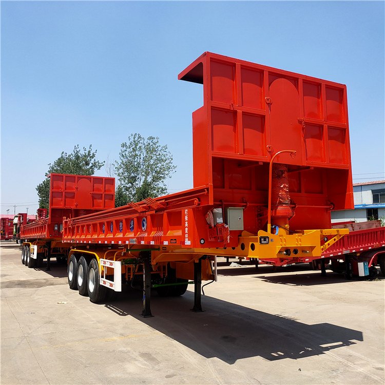 后翻自卸半挂车按用途可分为两大类:一类属于非公路运输用的重型和超重型自卸挂车主要承担大型矿山、工程等运输任务,通常和挖掘机配套使用。另一类属于公路运输用的轻中型普通自卸挂车主要承担砂石、泥土、煤炭等松散货物运输,通常与装载机配套使用。 1、车厢采用侧翻和后翻自卸方式,可有效地提高装卸机运输散装零散货物的运输效率。 2、车架和车厢纵梁均采用锰板焊接而成,货箱有簸箕和矩形两种,具有强度高、举升力强、刚度、韧性好,承载能力强,不发生变形。后翻自卸式半挂车适用于煤炭、矿石、建筑物料等散装零散货物的运输。