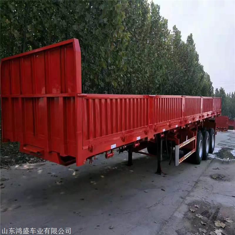 栏板式半挂车载货部位为栏板结构的半挂车。用途广泛,主要适用于中重型及散装货物的中长途运输,适用性强,已成为中、长途货运车辆之。整车车身采用优质钢材,先进的技术,严格的生产制造而成,整车结构合理,性能可靠,操作简便,外型美观。系列半挂车车架均为穿梁式结构,纵梁采用平直式或鹅颈式。腹板高度从400mm至550mm锰板焊接,纵梁采用自动埋焊焊接,车架采用喷丸处理,横梁穿入纵梁并焊接整体。悬架采用非独立钢板冲压式刚性悬挂,由串联式钢板弹簧和悬挂支座做成;结构合理,具有较强的刚性和强度,用来支承载荷减缓冲击。