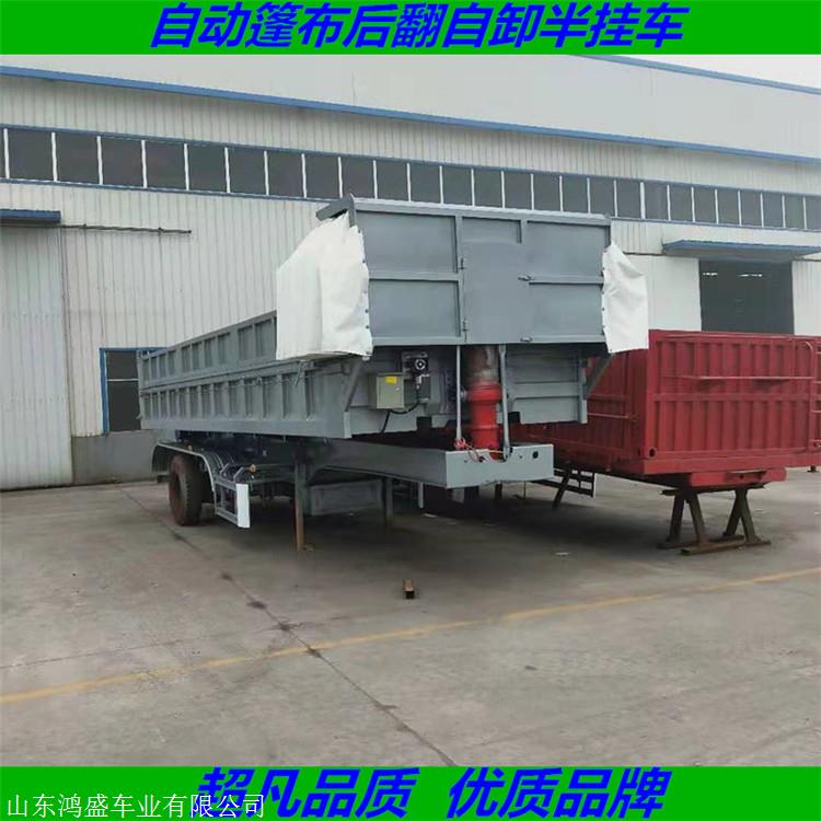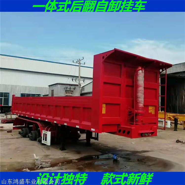 平板后翻自卸式半挂车适用于煤炭、矿石、建筑物料等散装零散货物的运输。后翻自卸半挂车按用途可分为两大类:一类属于非公路运输用的重型和超重型自卸挂车主要承担大型矿山、工程等运输任务,通常和挖掘机配套使用。另一类属于公路运输用的轻中型普通自卸挂车主要承担砂石、泥土、煤炭等松散货物运输,通常与装载机配套使用。 1、车厢采用侧翻和后翻自卸方式,可有效地提高装卸机运输散装零散货物的运输效率。 2、车架和车厢纵梁均采用优质锰板焊接而成,货箱有簸箕和矩形两种。具有强度高、举升力强、刚度、韧性好,承载能力强,不发生变形。 3、工艺精良:主要部件采用先进设备加工而成,纵梁有全自动埋弧焊接而成,采用装配机进行轮轴、钢板簧的精装配。自卸半挂车采用国产油顶.广东富华桥13吨16吨片两根或三根.8条或12条1100轮胎(三角.玲珑.双星.双钱)自选.副架工字梁.能起高度5-6米.整车车身采用优质钢材,先进的技术,严格的生产工艺制造而成,整车结构合理、性能可靠、作简便、外形美观。