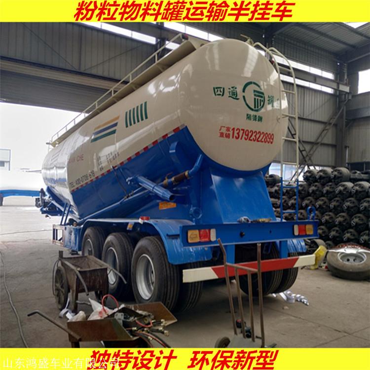 半挂粉粒物料运输车是利用自备发动机动力通过取力器驱动车载空压机,将压缩空气通过管道送入密封罐体下部的气室,使流化床上的水泥悬浮成流态状,当罐内压力达到额定值时,打开卸料蝶阀,流态化水泥通过管道流动而进行输送。驻车制动器由蓄能弹簧制动系统控制,车轮制动器兼作驻车制动器。在停车或驻坡时均使用本装置。散装水泥运输的专用车辆,一般适用于严格按照国家规定执行计重收费的区域,容积一般在35-45方之间。适用于粉煤灰、水泥、石灰粉、矿石粉等颗粒直径不大于0.1mm粉粒干燥物料的运输和气压卸料,卸料垂直高度达到15m时,水平还可输送距离达5m。