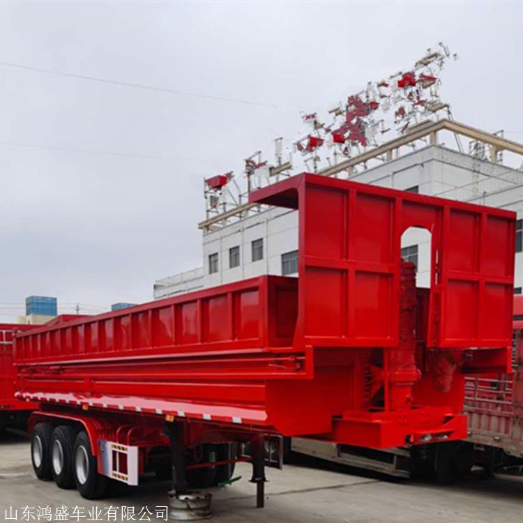 后翻自卸式半挂车适用于煤炭、矿石、建筑物料等散装零散货物的运输。后翻自卸半挂车按用途可分为两大类:一类属于非公路运输用的重型和超重型自卸挂车主要承担大型矿山、工程等运输任务,通常和挖掘机配套使用。另一类属于公路运输用的轻中型普通自卸挂车主要承担砂石、泥土、煤炭等松散货物运输,通常与装载机配套使用。 1、车厢采用侧翻和后翻自卸方式,可有效地提高装卸机运输散装零散货物的运输效率。 2、车架和车厢纵梁均采用优质锰板焊接而成,货箱有簸箕和矩形两种。具有强度高、举升力强、刚度、韧性好,承载能力强,不发生变形。 3、工艺精良:主要部件采用先进设备加工而成,纵梁有全自动埋弧焊接而成,采用装配机进行轮轴、钢板簧的精装配。自卸半挂车采用国产油顶.广东富华桥13吨16吨片两根或三根.8条或12条1100轮胎(三角.玲珑.双星.双钱)自选.副架工字梁.能起高度5-6米.整车车身采用优质钢材,先进的技术,严格的生产工艺制造而成,整车结构合理、性能可靠、操作简便、外形美观。