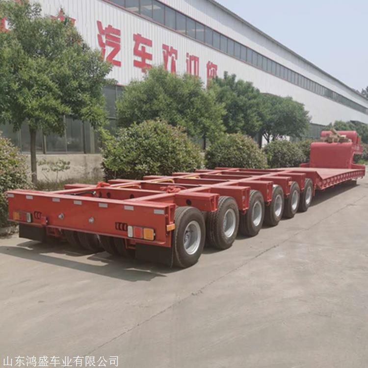 低平板半挂车用于拉机械设备,拉挖掘机、推土机等大型设备,可选装二桥三桥30吨、50吨、60吨、80吨、100吨、120吨、300吨低平板可抽拉、可选装液压爬梯车货架台柱平面低,保证了运输的平稳性,适宜运载各类工程机械、大型设备和钢材等。大件运输车、10t-150t低平板运输车。以及80t-1200t的液压轴线重型货物运输车以及特种挂车。每轴线承载力27t?左右,可升降转向拼接等功能扩展!是大件运输的液压轴线车。用于80t以上的重型物件运输。可普通适用于电力施工、采矿、冶金、化工、水力及火力发电设备制造、电站建设、重型机械制造、油田、桥梁、装卸作业、铁路建设等行业中的超重或不可拆卸的超限物件[超长、超宽、超高、超重]的中长距离公路运输。液压组合式挂车[全挂或半挂]主要由平板网格箱形主梁车架、液压悬挂、轮轴、转向杆系、液压系统、空气制动系统、动力机组等部件组成,具有货台高度可调、轮轴负荷均匀,转弯半径小,倒车方便等优点。在上下坡道以及斜坡上行驶可调整车身保持平衡位置,保证货物的稳定性。液压组合式挂车采用模块化设计,以适应不同外型尺寸及重量的工件,具有纵向拼接,横向拼接之功能。