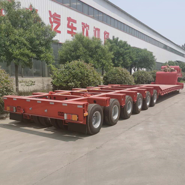 低平板半挂车通常用来运输重型汽车(如牵引车、大客车、专用汽车等)、轨道车辆、矿用机械、林业机械、工程机械(如挖掘机、推土机、装载机、铺路机、起重机等)及其他重载货物,其重心越低,稳定性和安全性越好,运输超高货物和通过头顶障碍的能力就越强。低平板半挂车通常采用凹梁式(或者井型)车架,既车架前段为鹅颈(鹅颈前段的牵引销与牵引车上的牵引鞍座相连,鹅颈后端与半挂车架相连),中段为货台(车架低部分),后端为轮架(含车轮)。公司提供低平板半挂车系列尺寸有9.5米、10.5米、11米、12米、12.5米、13米、13.75米超底板平板半挂车,宽度2.8米-3米,款式有高低板,高低高,二轴,三轴,两线四轴高低高,三轴高低高,三线六轴高低高。 低平板半挂车用于拉机械设备,拉挖掘机、推土机等大型设备,可选装二桥三桥30吨、50吨、60吨、80吨、100吨、120吨、300吨低平板可抽拉、可选装液压爬梯车货架台柱平面低,保证了运输的平稳性,适宜运载各类工程机械、大型设备和钢材等。