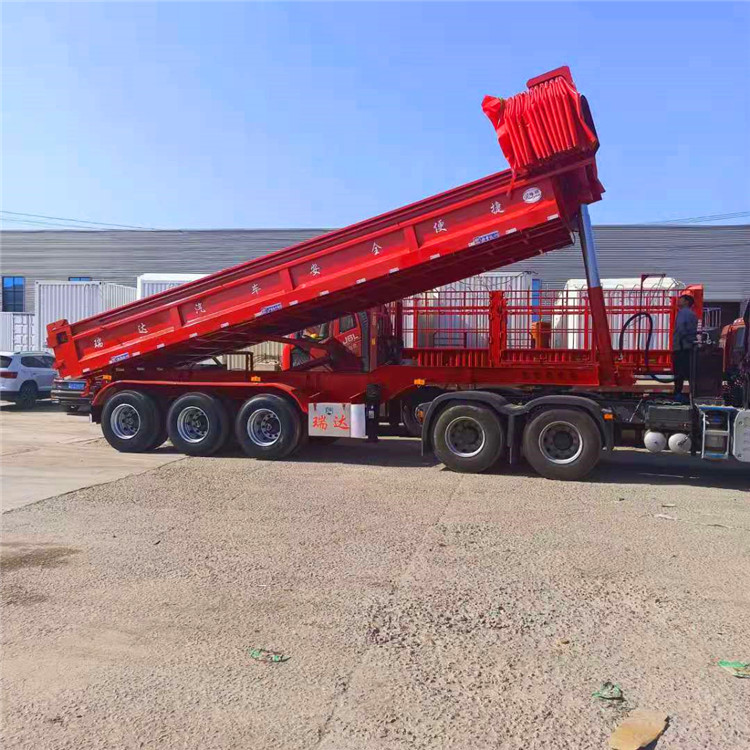 自卸半挂车轻量化制造,国产油顶.广东富华13吨16吨片两根或三根.8条或12条1100轮胎(三角.玲珑.双星.双钱)自选.副架工字梁.能起高度5-6米.整车车身采用钢材,先进的技术,严格的生产工艺制造而成,整车结构合理、性能可靠、操作简便、外形美观。半挂车车架均为穿梁式结构,纵梁采用平直或鹅颈式。腹板高度从?400mm至550mm锰板焊接,纵梁采用自动埋弧焊焊接,车架采用抛丸处理,横梁穿入纵梁并焊接整体 悬架采用非独钢板冲压式刚性悬挂(可选装空气式悬挂)由串联式钢板弹簧和悬挂支座组成,结构合理,具有较强的刚度和强?度,用来支承载荷减缓冲击。该产品的质量可靠,用途广泛,已成为中、长途车辆的A要车型。主要适用于中重型及散装货物的中长途运输,所运输货物的适用性强。