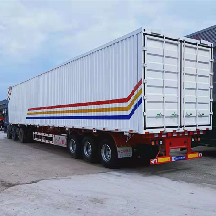 为了适应大型物流公司的需求,3轴飞翼半挂车正式列为工信部生产型号,为优化场地限制,使车辆在没有大型室内外场地装卸的情形下,能满足叉车后门单一装卸,公司专门研发了卧顶式飞翼,大大增加并满足了叉车托盘进入车厢需求,其车的优点是:1.外饰铝波纹板或铝平板,内饰镀锌板2.厢体下端50cm高是栏板,底部装卧环,便于固定货物3.电液一体化举升装置,由一个动力单元控制电钮控制举升,两翼可举升90度4.厢体四个液压双回路吸附油缸5.此车密封性好,防尘、防盗、防雨,适合机械快速装卸,主要用于重型设备、服装等企业使用。这种厢式专用车,便于侧面装卸货物,而普通厢式车只能从货厢尾门装卸,不能快捷地装卸货物,为了提高物流效率,需要厢体两侧也能完全敞开,装卸设备可以直接从两侧对货物进行装卸作业。翼开启式车就实现了两侧厢板开闭,大幅度缩短了货物装卸时间。