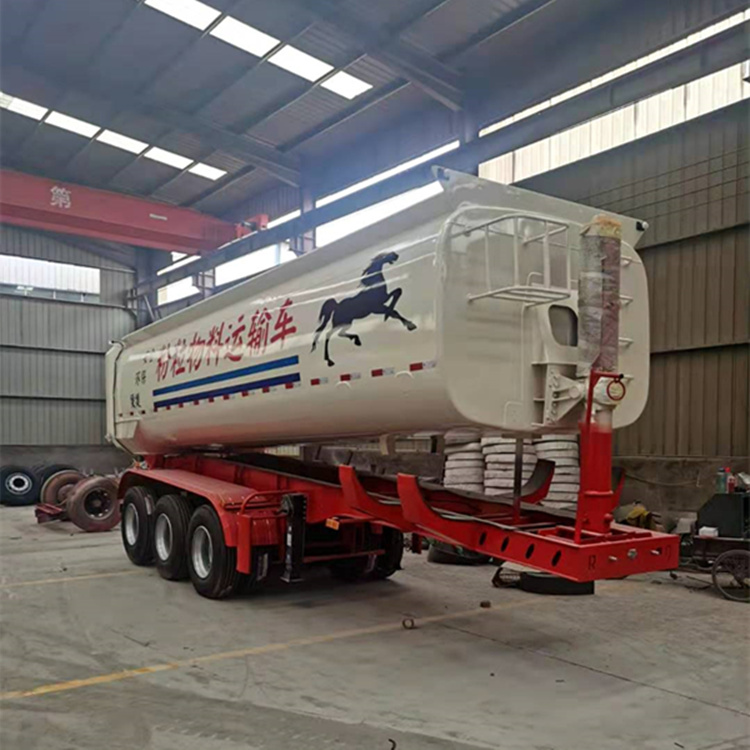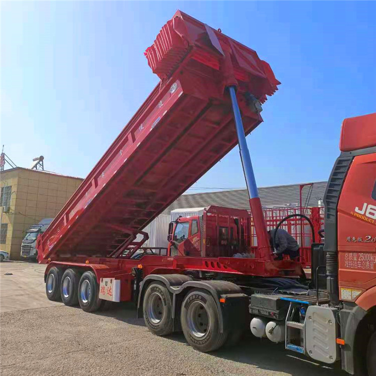 自卸半挂车轻量化制造,国产油顶.广东富华13吨16吨片两根或三根.8条或12条1100轮胎(三角.玲珑.双星.双钱)自选.副架工字梁.能起高度5-6米.整车车身采用钢材,先进的技术,严格的生产工艺制造而成,整车结构合理、性能可靠、操作简便、外形美观。半挂车车架均为穿梁式结构,纵梁采用平直或鹅颈式。腹板高度从?400mm至550mm锰板焊接,纵梁采用自动埋弧焊焊接,车架采用抛丸处理,横梁穿入纵梁并焊接整体 悬架采用非独钢板冲压式刚性悬挂(可选装空气式悬挂)由串联式钢板弹簧和悬挂支座组成,结构合理,具有较强的刚度和强?度,用来支承载荷减缓冲击。该产品的质量可靠,用途广泛,已成为中、长途车辆的A要车型。主要适用于中重型及散装货物的中长途运输,所运输货物的适用性强。