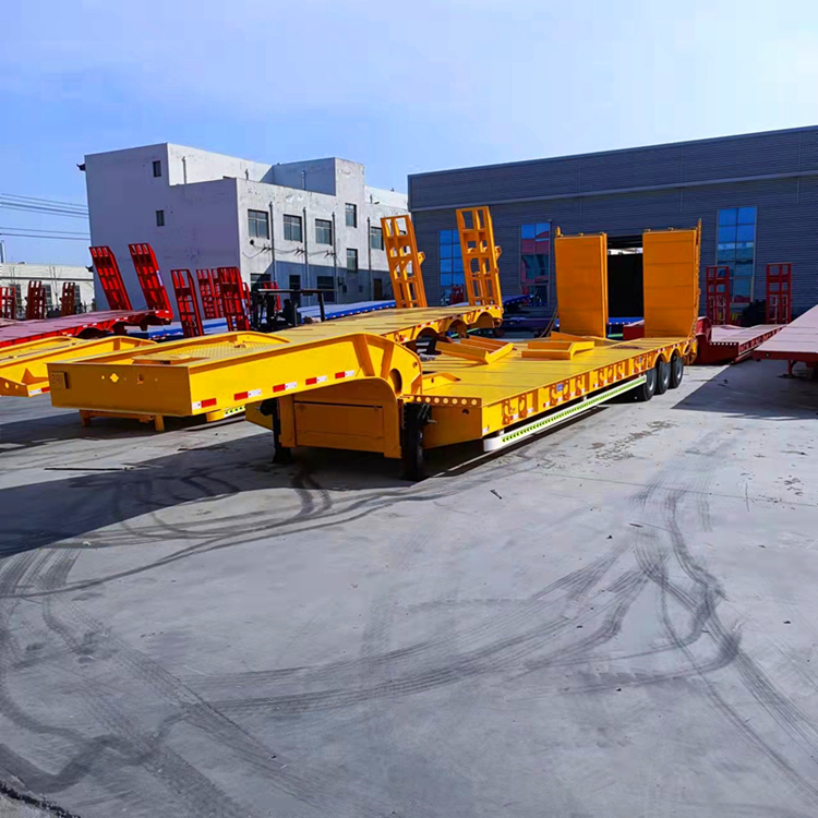 低平板半挂车悬架采用三轴平衡式、双轴平衡式或刚性悬架独具特色的新型悬挂系统,强度高,耐冲击性强;各轴载荷平衡,在前后钢板弹簧之间装有质量平衡块,可使前后钢板弹簧的挠度等量变化,使前后轴受力均衡等 。采用系统拉杆角度设计合理,在运行频繁的颠簸过程中,减小轮胎与地面的瞬间摩擦滑移距离,有效降低轮胎磨损,同时可调拉杆可调整轴距,可有效避免轮胎的偏磨和啃胎现象;轴卡为整体铸造件,二氧AA化碳气体逆变焊接;整个车架经喷丸处理,使车辆更美观 。整车采用先进的计算机辅助设计软件进行优化设计而成,根据车辆承载质量要求,对车架进行有限元分析,科学设计、合理分载。 由于低平板半挂车货台低,上部提供了较大的装货空间,同时装载后重心低,车辆运行安全可靠。型号齐全、设计灵活多样,根据用户需求设计车架承载面,满足各种特殊货物的运输。现已出口近十个国A家和地区,目前是国内大件运输客户的选车型。