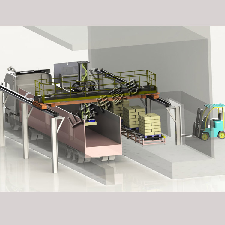 自动桁架式装车机是一种建立在直角X,Y,Z三坐标系统基础上,对袋料进行工位调整,或实现袋料的轨迹运动等功能的全自动工业设备。它的主要功能代替人工装车操作,自动将物品逐层、逐垛地码放至车厢内,物品可按照要求自动编组。大大地节省了人力降低了成本。可对各种包装进行全自动装车作业,具有装车速度快、摆放整齐,自动化水平高的特点。