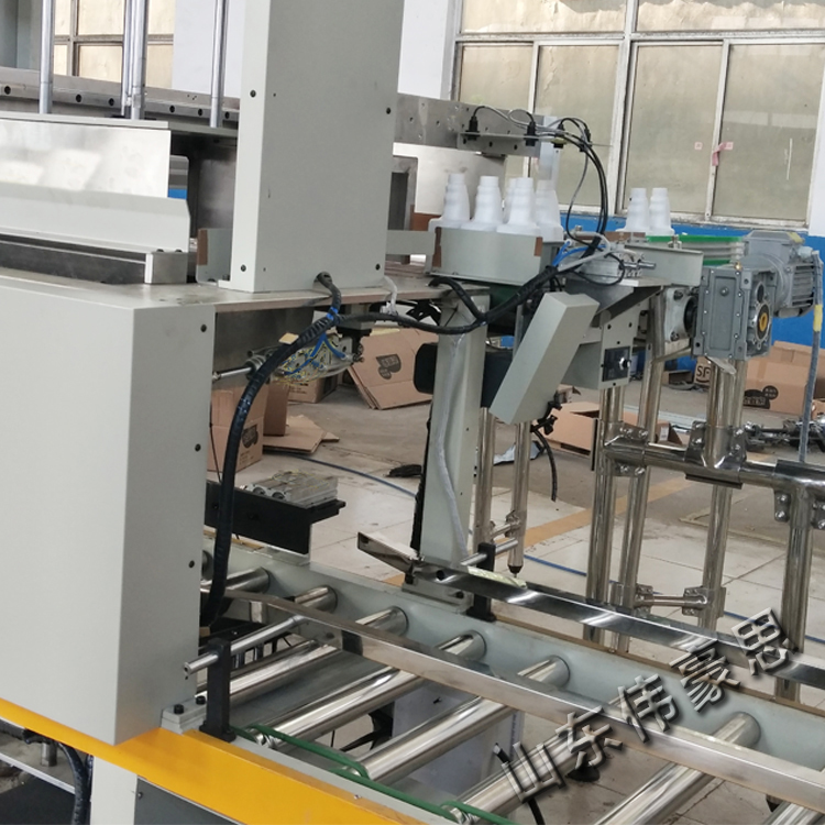 山东伟豪思玻璃瓶装箱码垛线是为了解决生产力,提前生产效率而生产研发的一款自动化装箱码垛设备,它配合自动灌装、贴标线,配套设计自动放空瓶、自动开箱、自动装箱、自动封箱、自动码垛的全套生产。