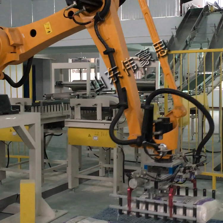 适用于粮食、石油、建材、冶金、电力、食品、饲料,化肥,化工、面粉等行业的袋装物品的码垛作业,如硝石灰、氧化镁、石英砂、石灰石、木屑、活性碳、奶粉、PVC粉、粉煤灰、尿素、粘土、石膏、水泥、污水处理添加粉料等,箱子和其它包装形式的不太合适。