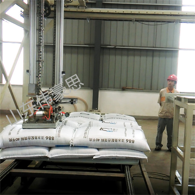 硫酸亚铁卸垛机械手设备性能良好,卸包质量好,卸包速度快,是提高企业生产效率的设备,可实现对纸袋、塑料袋物料、箱料的卸包作业,满足大多数企业对物料搬运和卸垛要求。